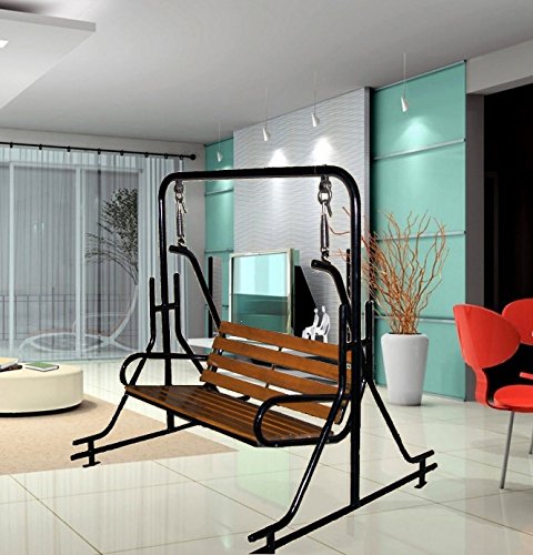 .Description: * Type: Indoor metal Swing * Material: base M.S pipe (dia.32mm & .25 mm) * Material on seat: Made from teak wood. * Color: black on metal(swing body) & wood finish polish on wood(swing seat) * Style: Contemporary * Capacity: 300 kg. * Number of Seats: 2 people * Finish: glossy * Swing size: Length 58 inch x Width 42 inch * Delivery Condition: Buyer do Assembling by yourself (The product require few assembly. its easy then ready to use.) * Cline: Easy to wash with mild water * Quantity: 1 Piece (Swing) *Paint: One coat of metal primer & two coats of colors. * All courier charges to be borne by the buyer in case the product is returned or has to be exchanged under the Return Policy.*The shipment will be delivered ground level only. *If octroi applicable in your city then buyer paid octroi charges.